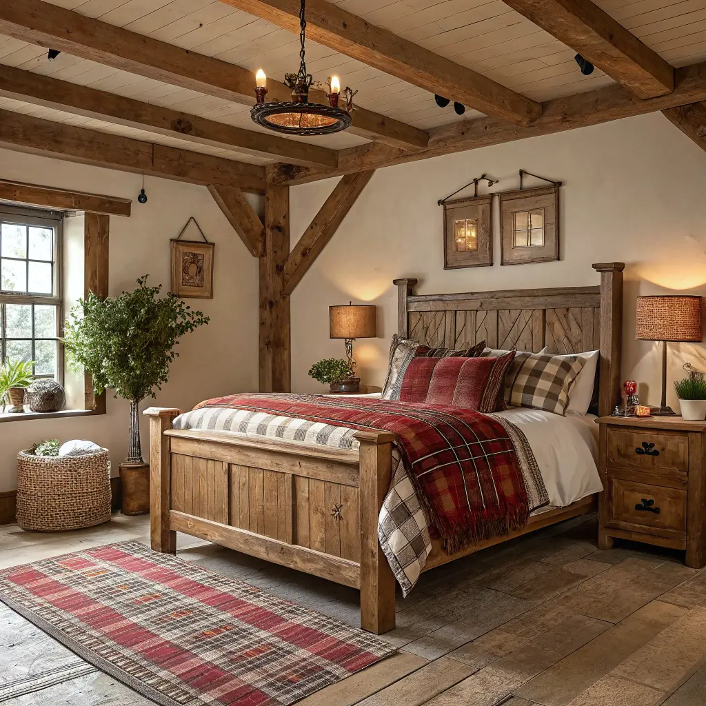 Rustic farmhouse bedrooms balance roughness with comfort, creating spaces that feel both rugged and inviting.