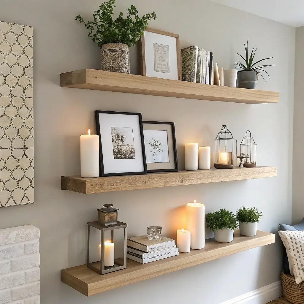 The key to making floating shelves look intentional rather than cluttered? Careful curation. You want each shelf to tell a mini-story while contributing to the overall vibe of your room.