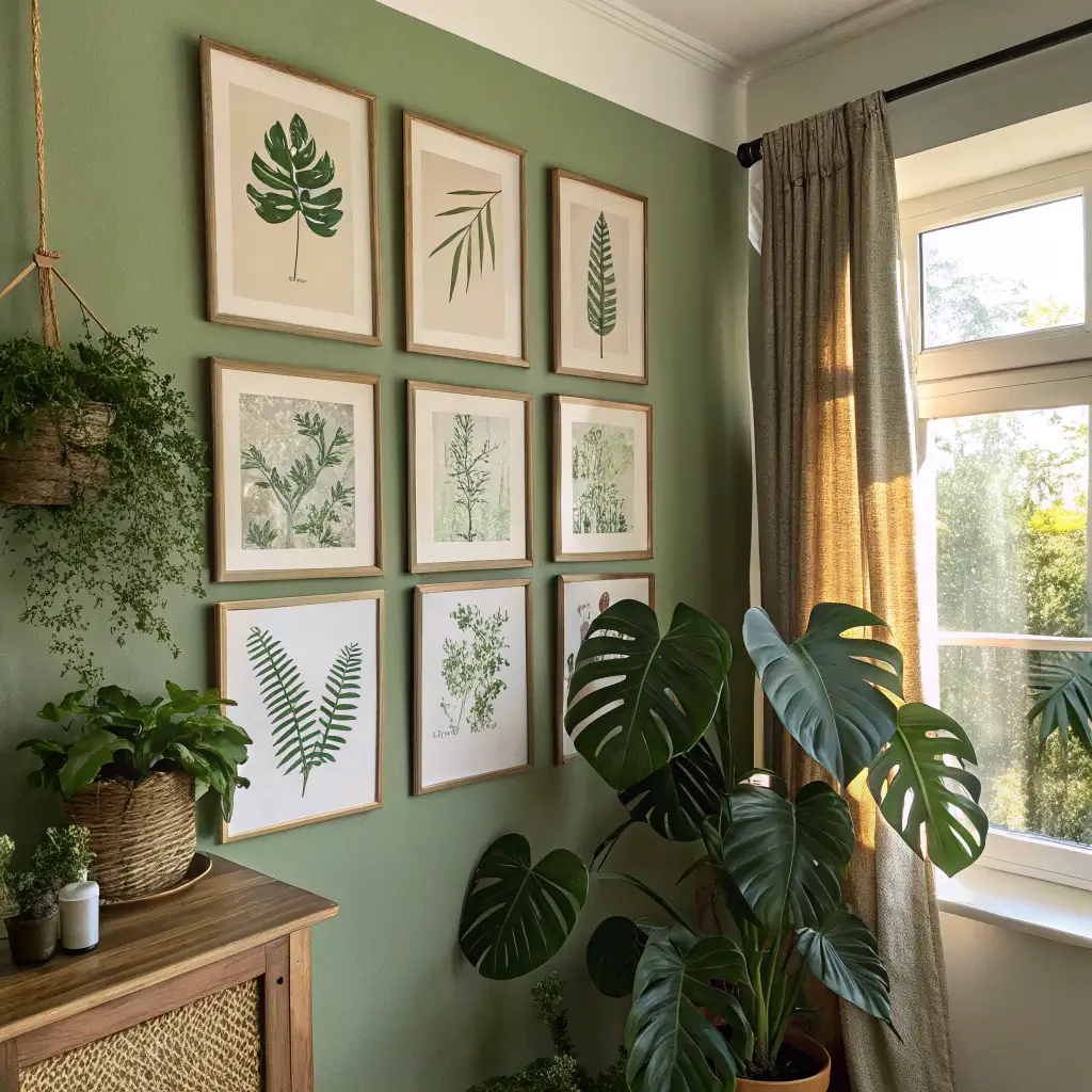 Want to level up? Add a real plant or two near your botanical wall for that 3D effect.