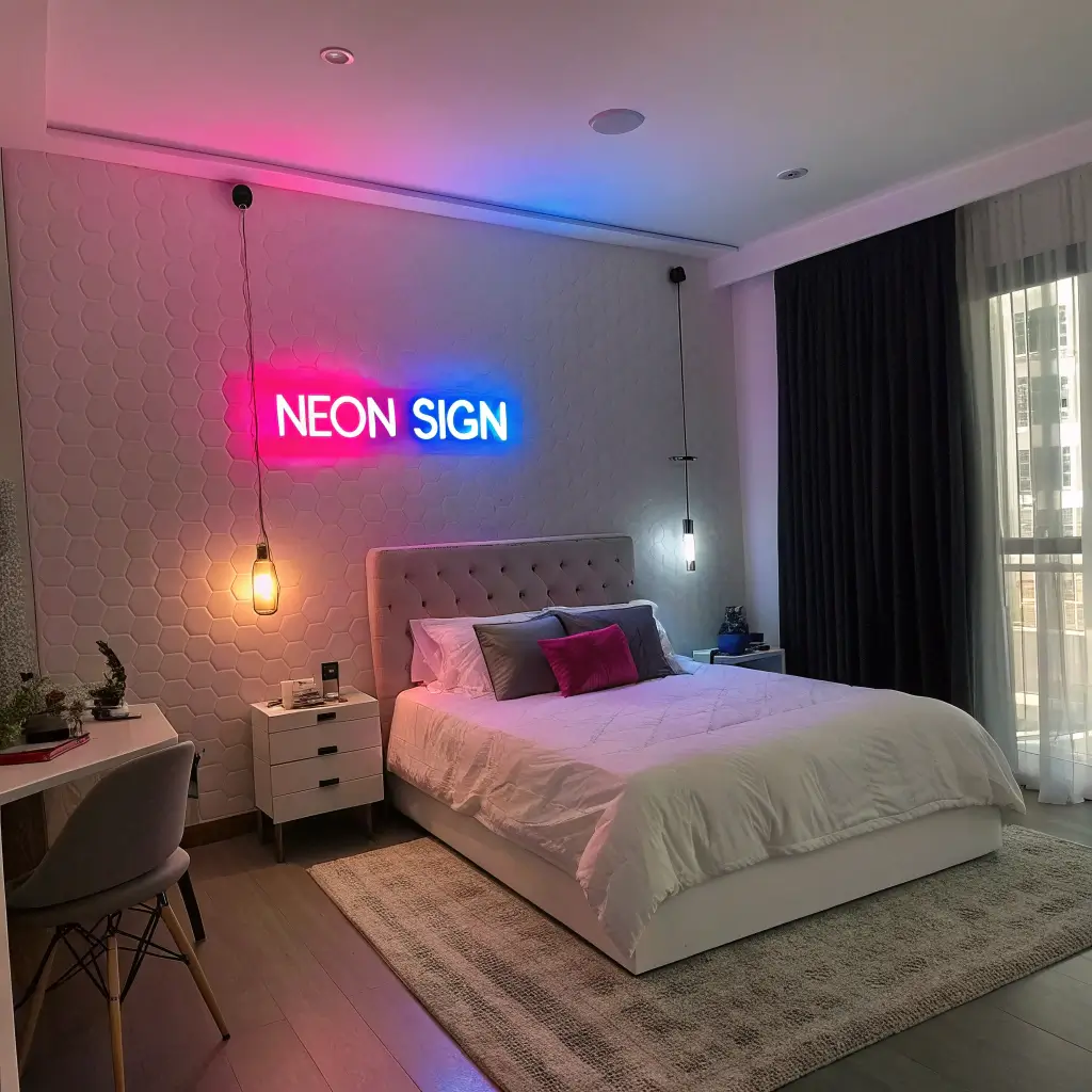 Let’s talk about making a statement. A neon light accent takes your bedroom from basic to basically amazing. Whether it’s a motivational quote, your favorite song lyric, or just a cool shape, neon adds that Instagram-worthy edge.