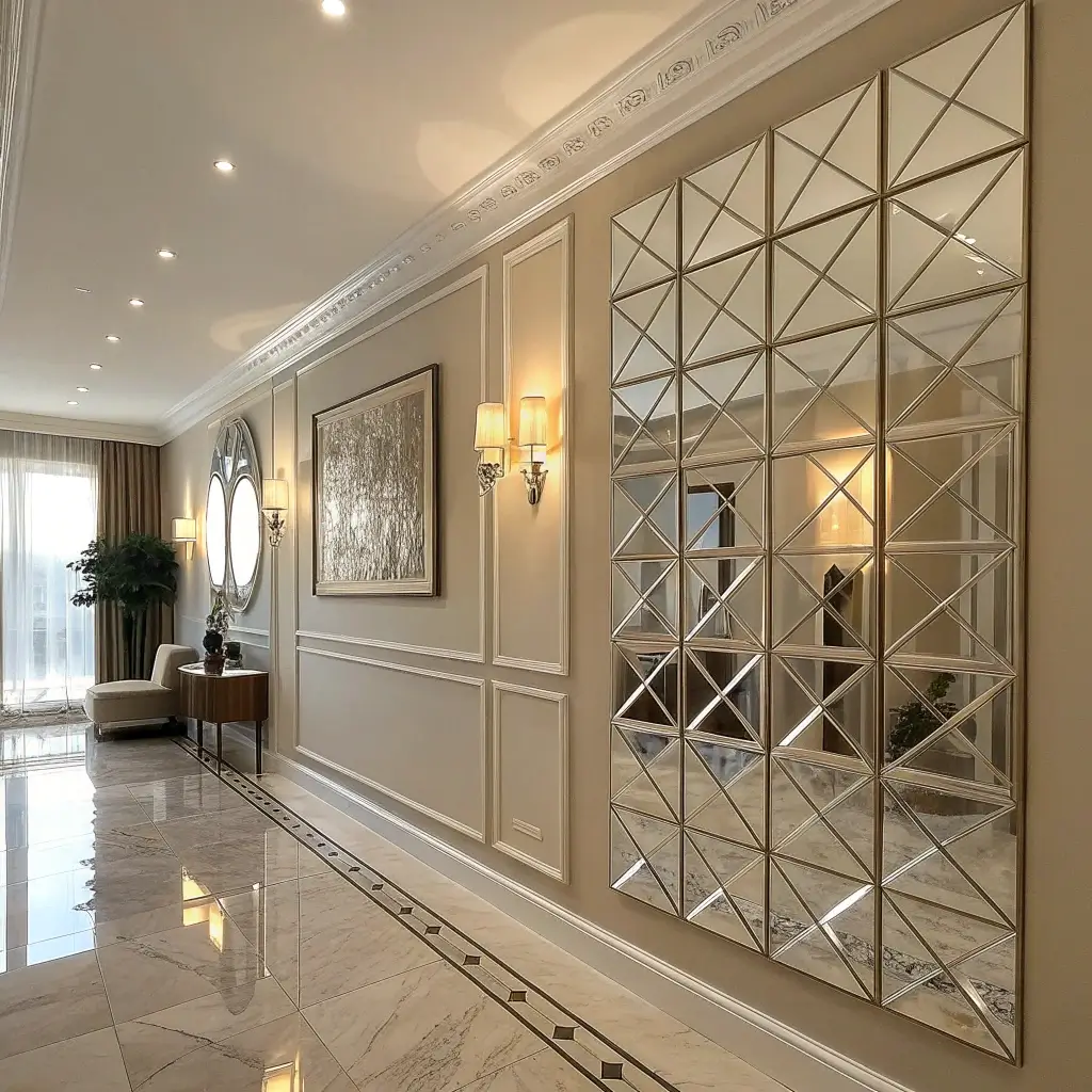 Mirrors aren’t just functional – they’re decorative powerhouses that make your space feel bigger and brighter. A mirror mosaic takes this concept and runs with it, creating visual interest while bouncing light around your room.