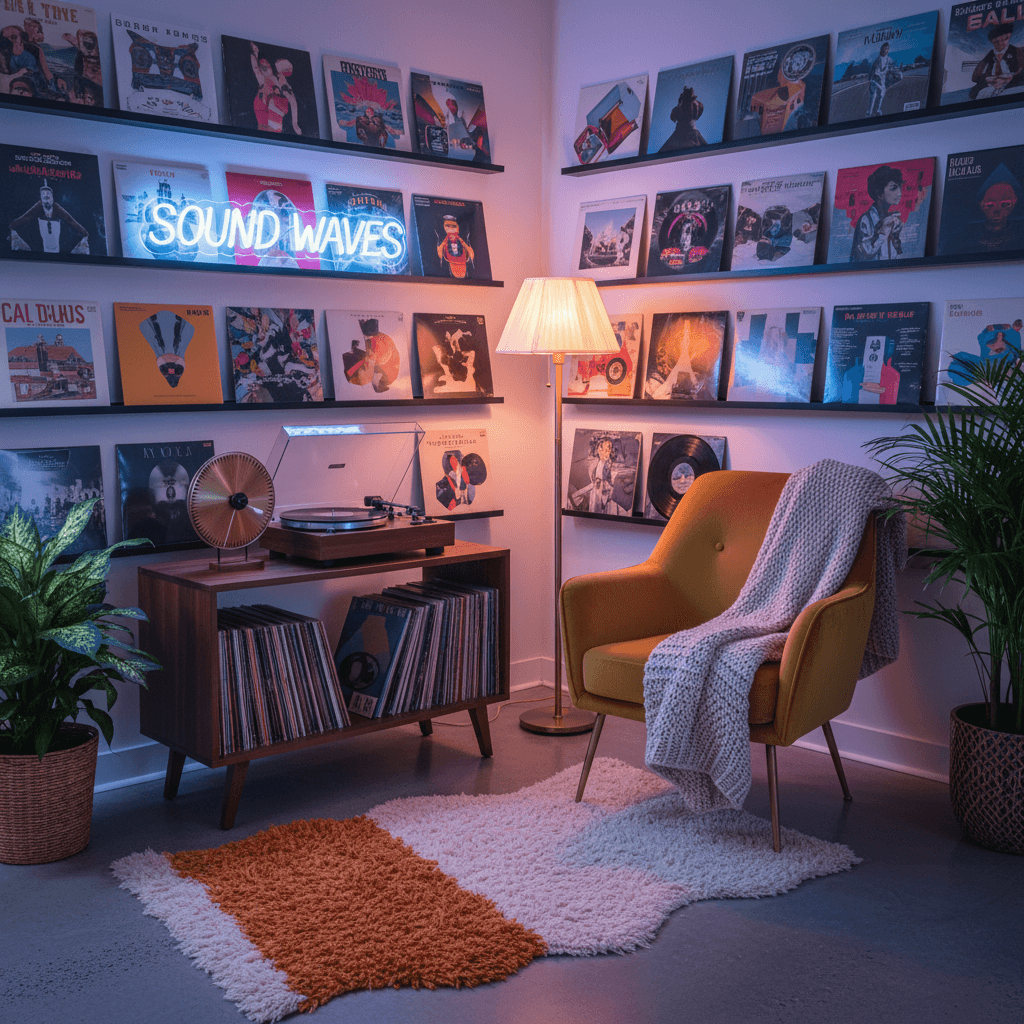I arranged my collection chronologically, creating a visual timeline of my music taste evolution. Every record tells a story, and together they create a conversation starter that beats generic art any day.