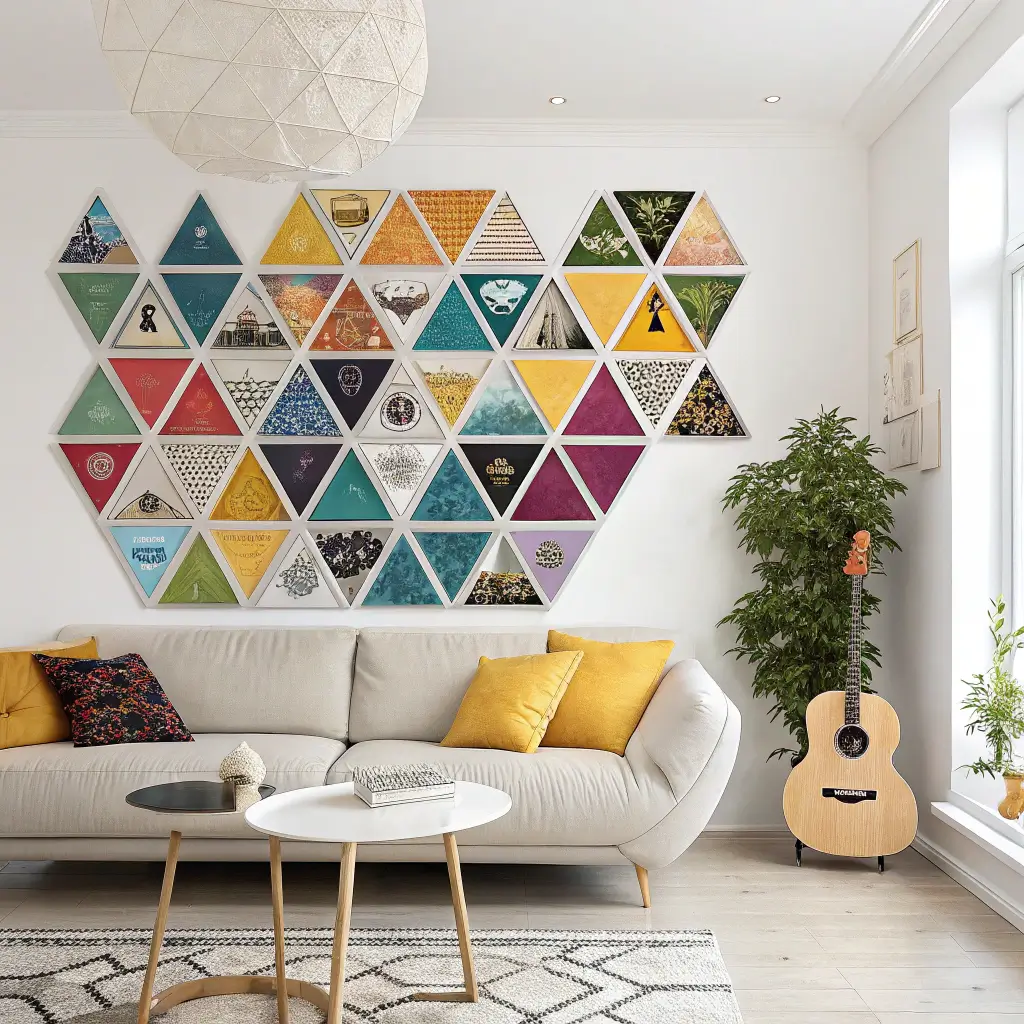 Triangles, hexagons, diamonds – oh my! Geometric arrangements turn your album collection into mathematical art. This isn’t your standard square grid; we’re talking creative shapes that make people stop and stare.