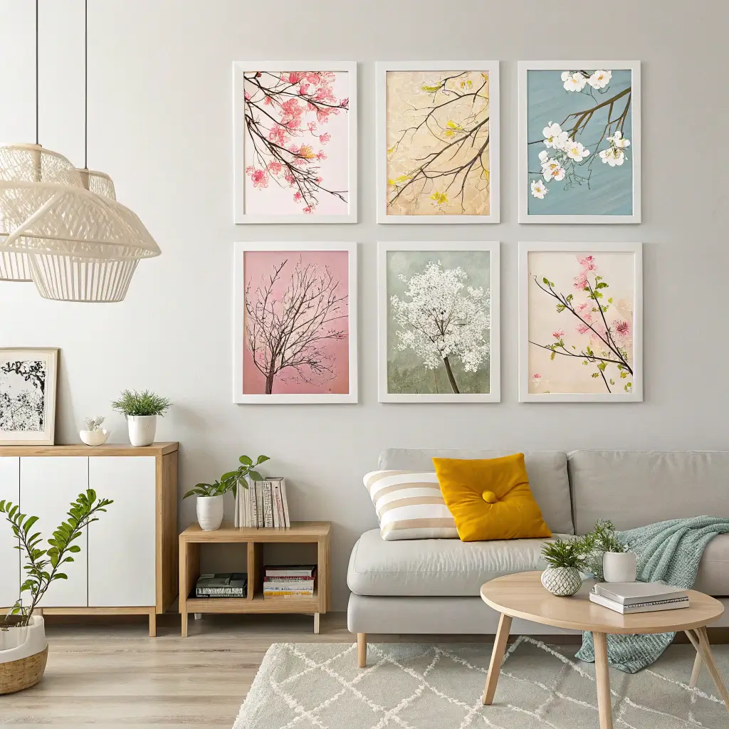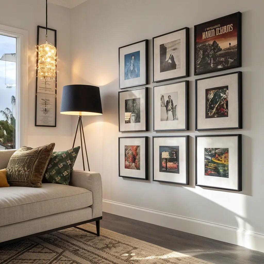 Pro tip: Use painter’s tape to map out your grid on the wall before hammering any nails. This saves you from the heartbreak of crooked frames and unnecessary holes in your drywall.