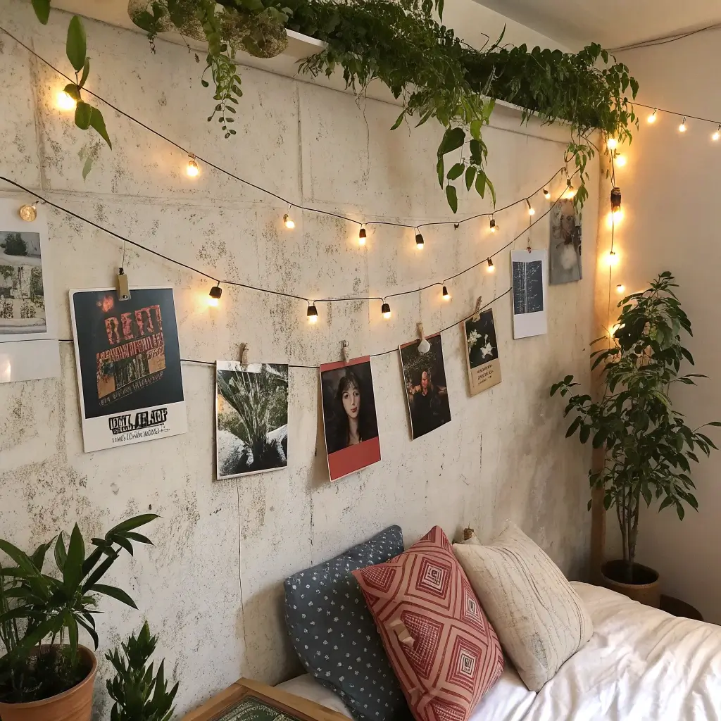 Incorporate natural materials like driftwood as hanging rods. Weave fairy lights through the macramé for evening ambiance. Add dried flowers or pampas grass between albums for that full boho aesthetic.