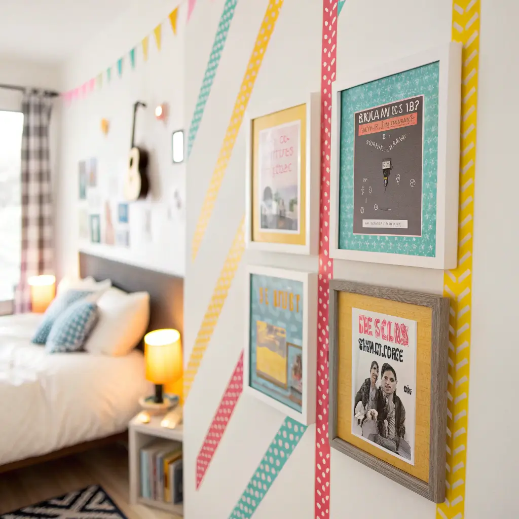 Who needs expensive frames when you’ve got washi tape? This budget-friendly approach lets you create colorful, temporary frames directly on your wall. Perfect for renters or commitment-phobes.