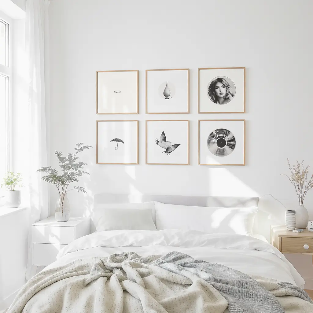Measure twice, hang once. Seriously. Use painter’s tape to mark your grid on the wall first. Nothing ruins the minimalist vibe faster than crooked frames. Trust me on this one.