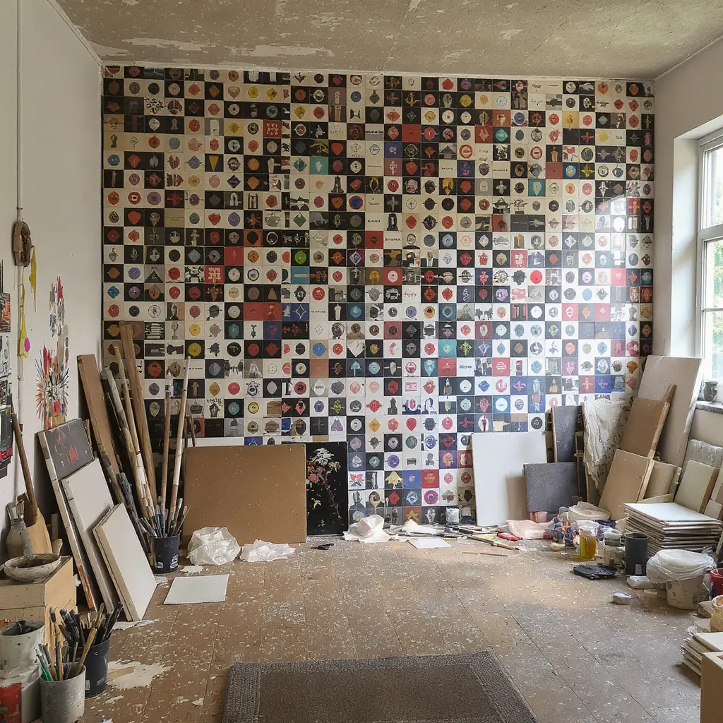 Ready for a weekend project that’ll blow minds? Create an entire wall mural using album covers as tiles. I covered my entire home studio wall—took 180 albums and two days, but holy smokes, the impact.
