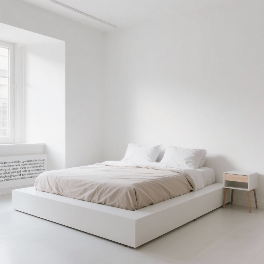 Start with a platform bed or a simple frame that sits low to the ground. This creates the illusion of more vertical space, which your brain interprets as roomier overall. Stick to a neutral color palette – think whites, grays, and maybe one accent color if you’re feeling spicy.