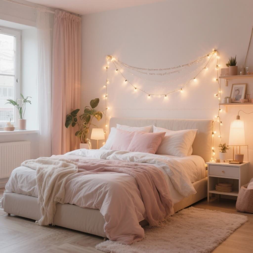 Apartment Bedroom with String Lights