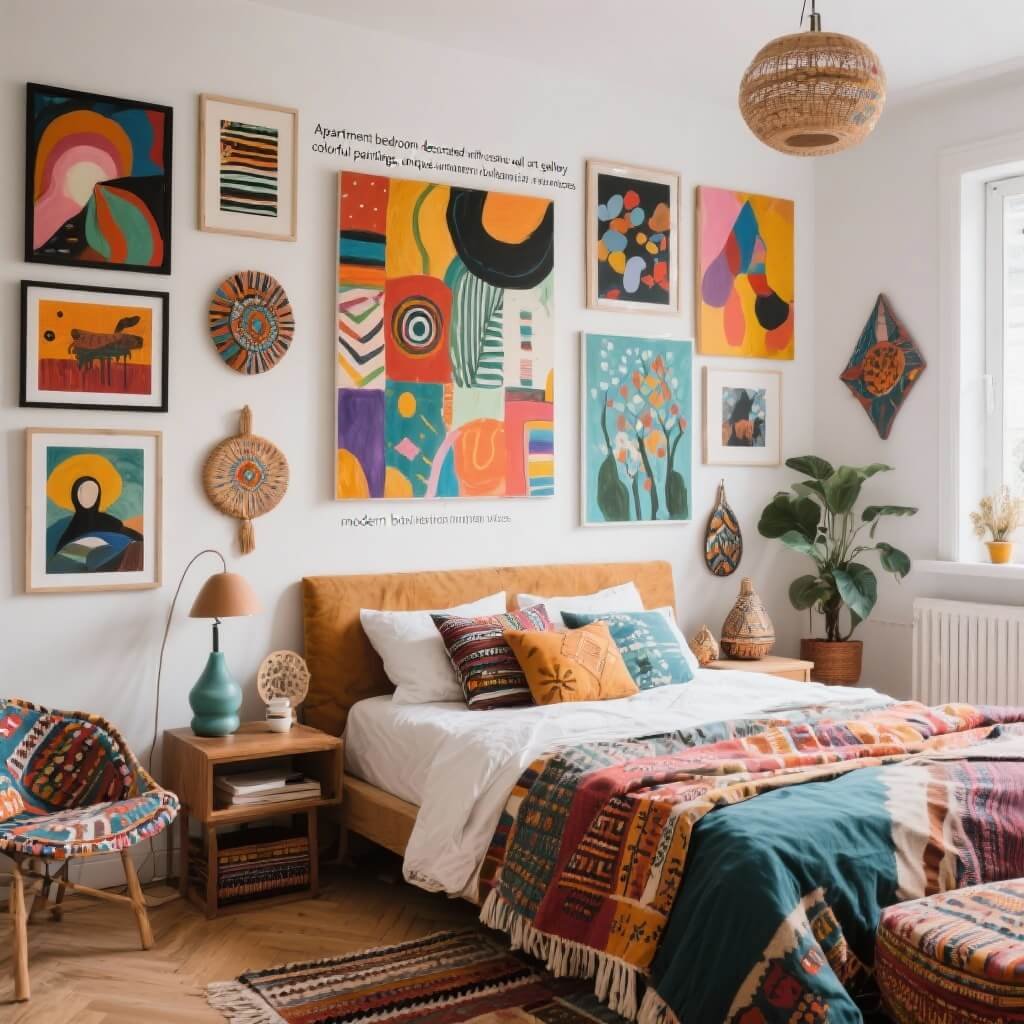 Artistic Apartment Bedroom with Wall Art
