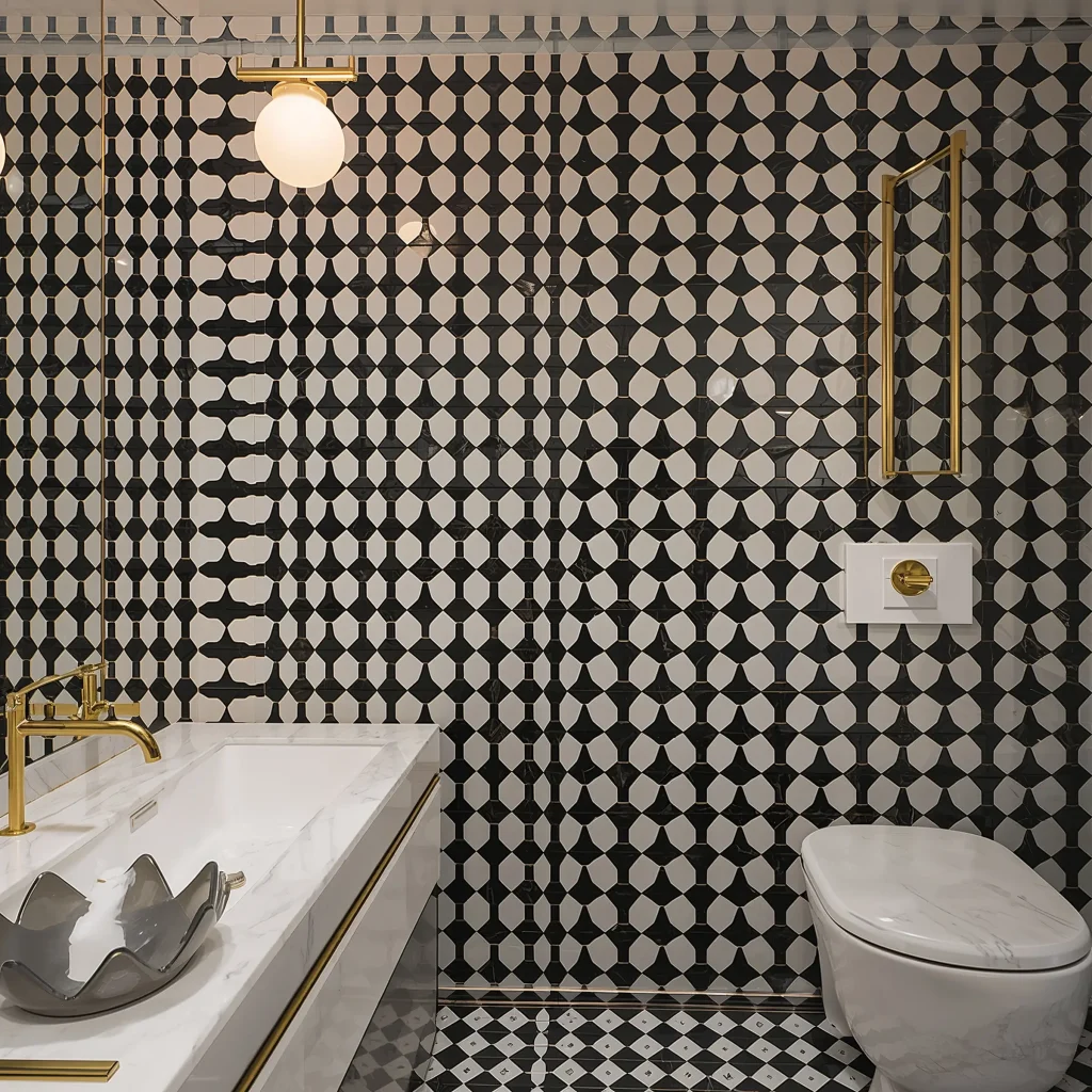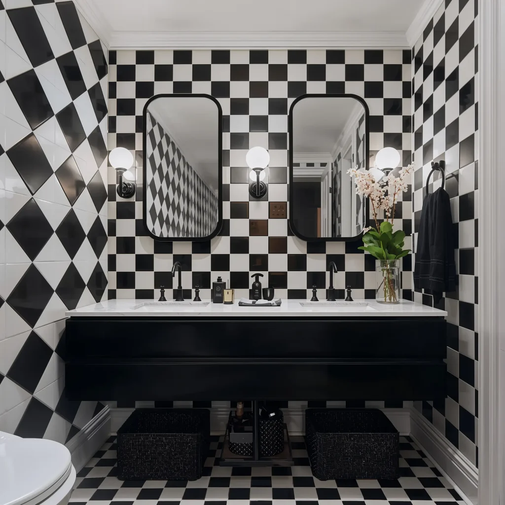 Remember, checkerboard patterns create strong visual movement. In small bathrooms, this can feel overwhelming. Consider using checkerboard on a single wall or the floor only. Your eyes (and equilibrium) will thank you.