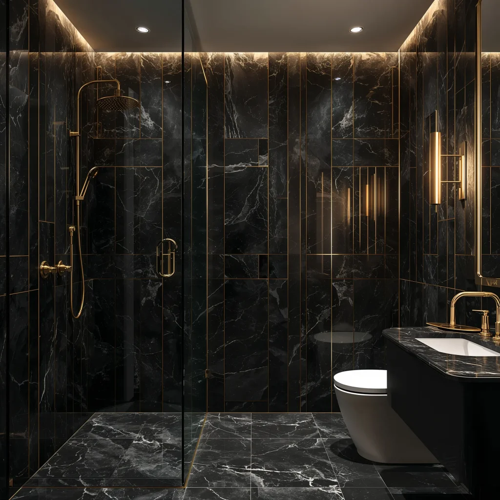 I always recommend using black marble tiles as a statement wall rather than covering every surface. Behind a freestanding tub? Gorgeous. Full shower surround with glass doors? Absolutely. Every single wall in a windowless bathroom? Maybe reconsider.