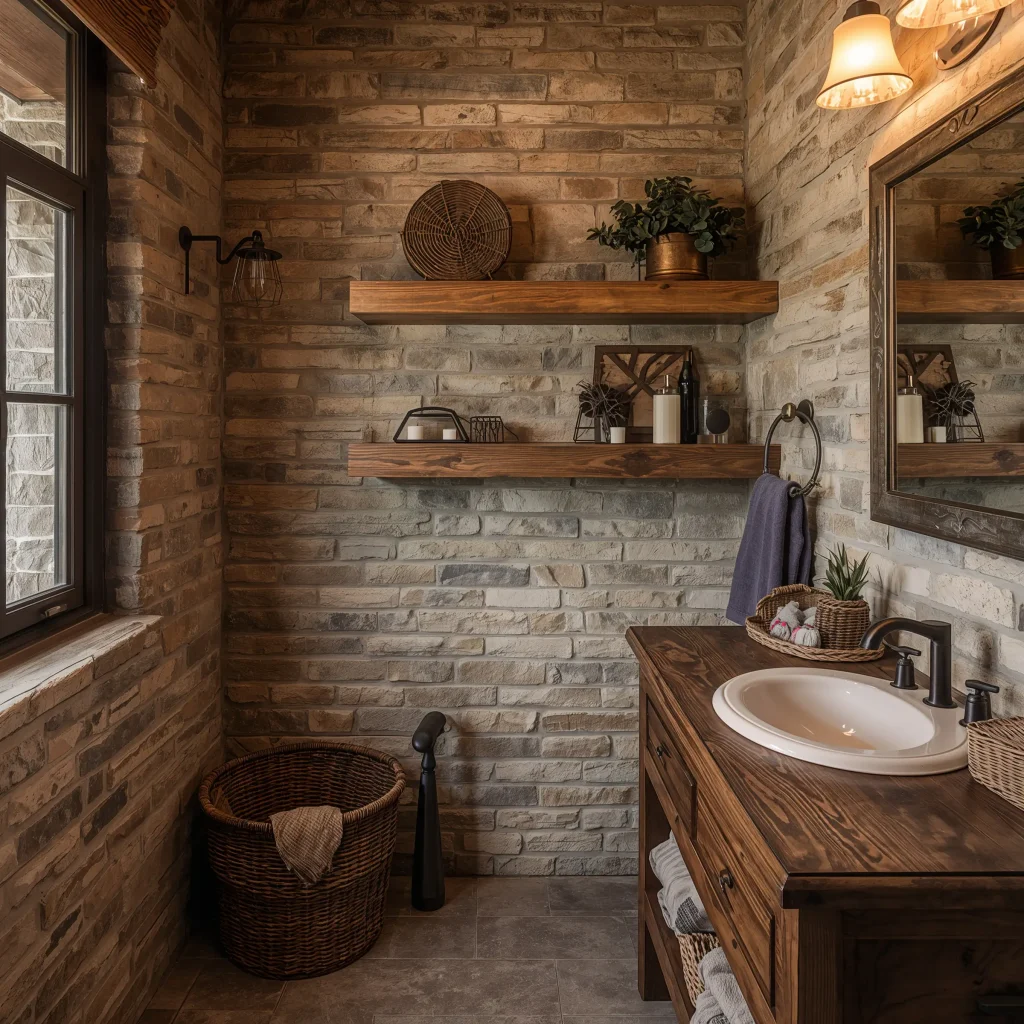 - Copper or brass fixtures for warmth