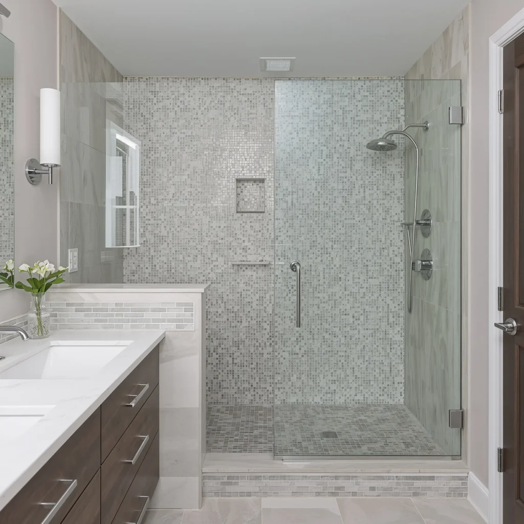 Pro tip: Use mosaics strategically. A single accent strip running horizontally at eye level breaks up larger tiles beautifully. Or create a stunning focal point behind the showerhead. Full mosaic walls work too, but prepare for some serious grout-cleaning commitment.