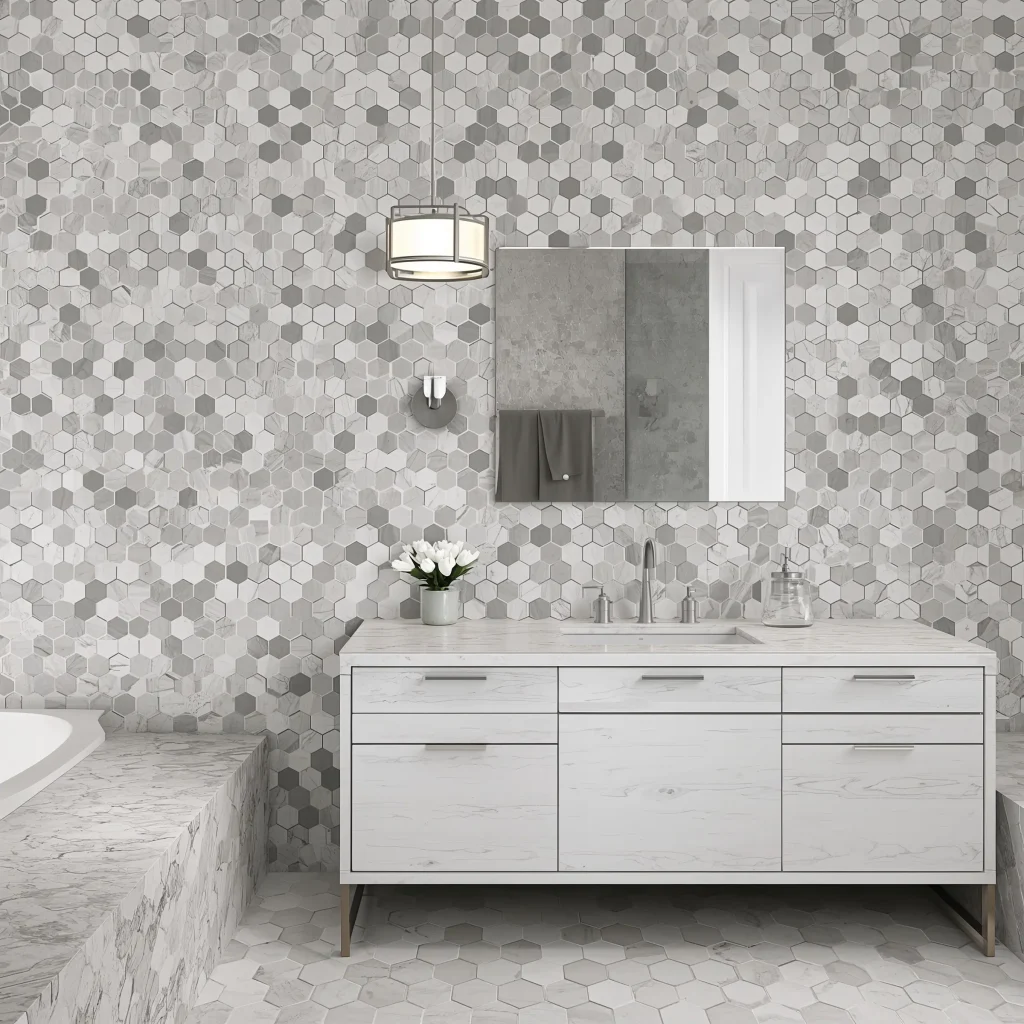 What I love about hexagon tiles? They create natural patterns that feel organic despite being geometric. Large-format hexagons make bold statements, while smaller ones create intricate honeycomb patterns that add subtle texture. Mix sizes for a truly unique look that nobody else will have.