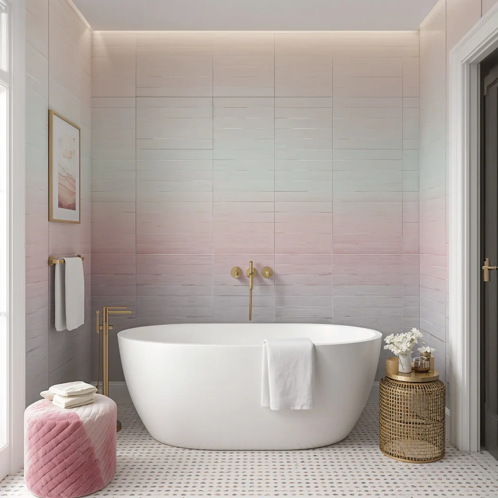 Who says bathrooms can’t be pretty? Pastel gradient tiles bring this dreamy, almost ethereal quality that makes morning routines feel less like chores and more like self-care rituals. IMO, these tiles work magic in powder rooms where you want to make a soft but memorable impression.