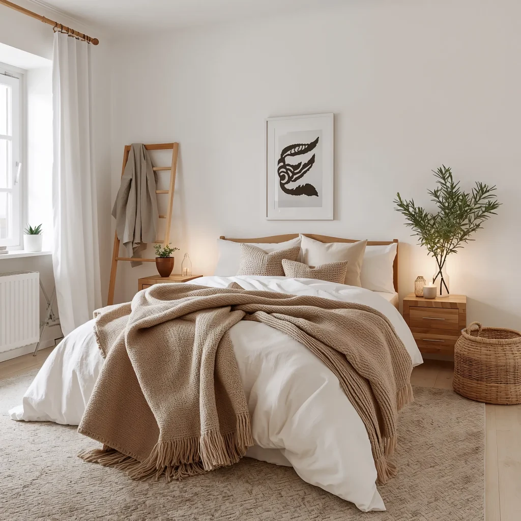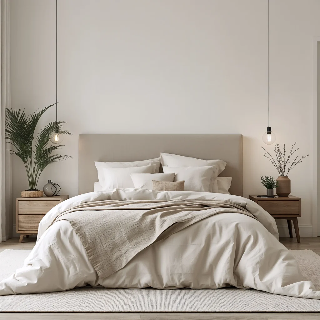 Invest in quality bedding – this style is all about comfort. Natural materials like linen and wool regulate temperature naturally, keeping both partners comfortable regardless of their sleep preferences.