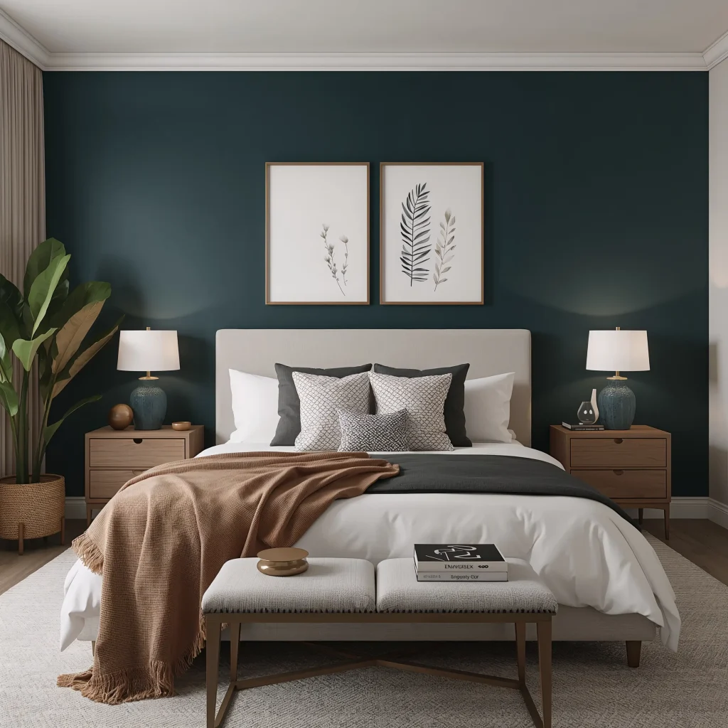 Ready to make a statement? One bold accent wall can completely transform your bedroom’s personality. And here’s the best part – if one of you loves color and the other doesn’t, this compromise works perfectly.