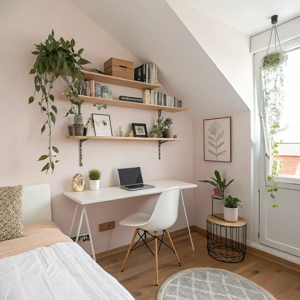 Wall-mounted desks fold down when you need them, disappear when you don’t. Pegboards aren’t just for garages – they organize jewelry, accessories, and even small plants in bedrooms too.