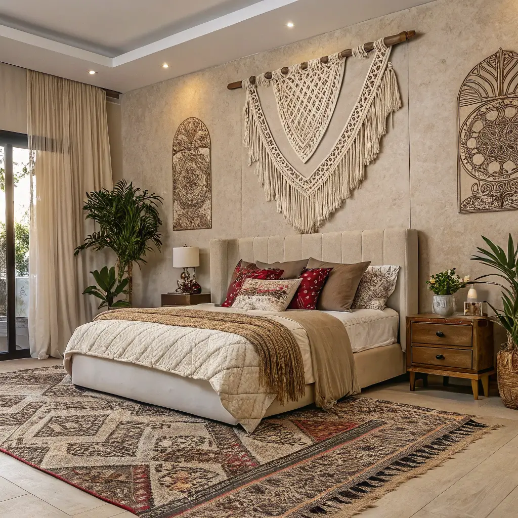Here’s where we get comfortable. Like, really comfortable. The cozy luxe bohemian bedroom takes that free-spirited boho vibe and elevates it with premium materials and thoughtful layering.