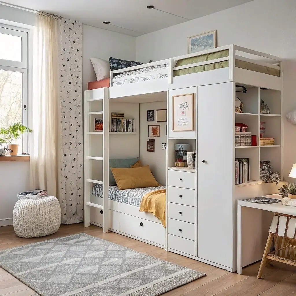 Multi-functional furniture is your best friend in small spaces. A storage ottoman at the foot of the bed, a desk that doubles as a vanity, or nightstands with multiple drawers—each piece should earn its place by serving at least two purposes.