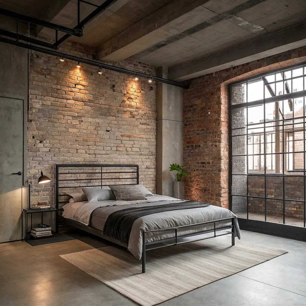 Balance hard industrial materials with soft textiles. A chunky knit throw on that metal bed frame, plush rugs on concrete floors, abundant pillows against that exposed brick wall. Without these softening elements, you’re sleeping in a factory, not a bedroom.