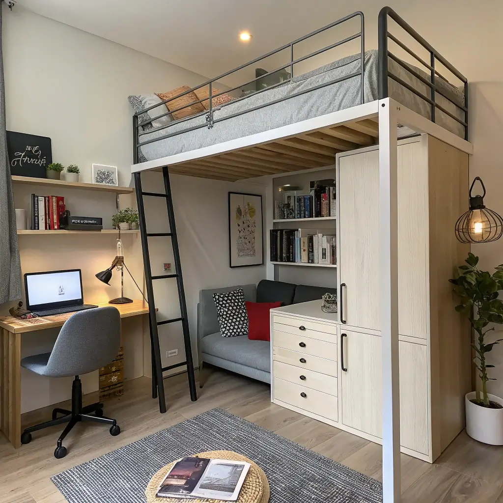 Your studio bedroom zone needs sleep-specific considerations: blackout curtains or shades, white noise options to block city sounds, and visual separation from your workspace (crucial for remote workers who need to “leave” work mentally).