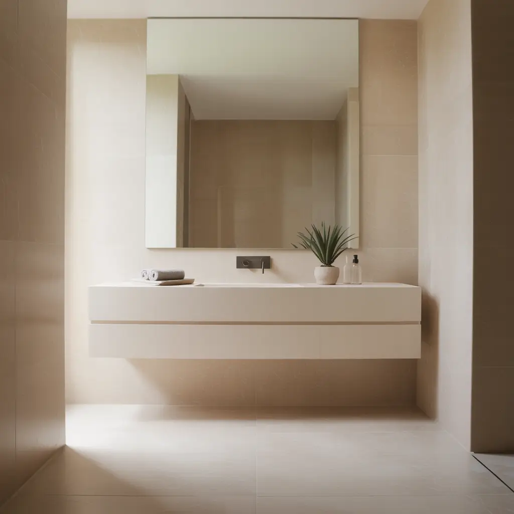 Modern Minimalist Beige Bathroom Design