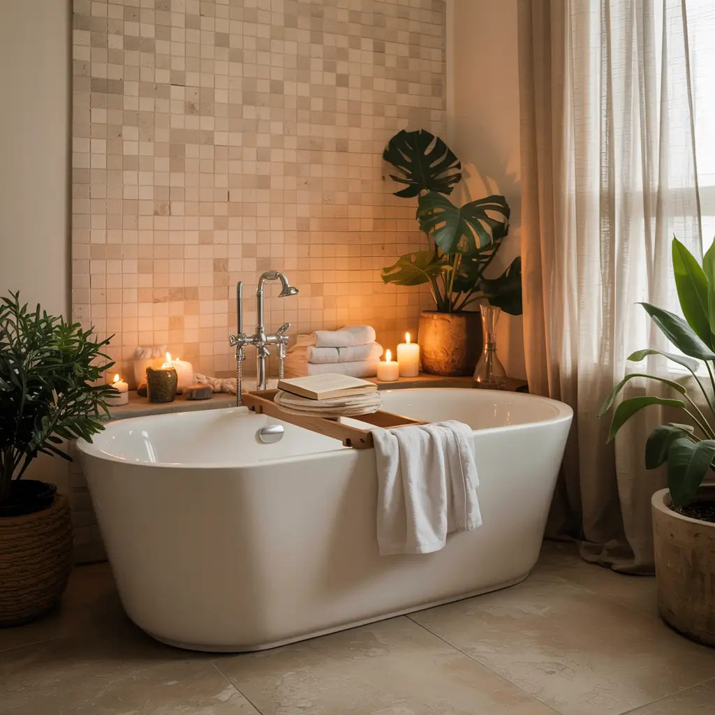 The secret sauce? Layer your lighting. Natural light from windows or skylights, ambient ceiling lights, and task lighting around mirrors. All this light bouncing off those beige tiles creates this gorgeous, diffused glow that’s basically nature’s Instagram filter for your face 🙂
