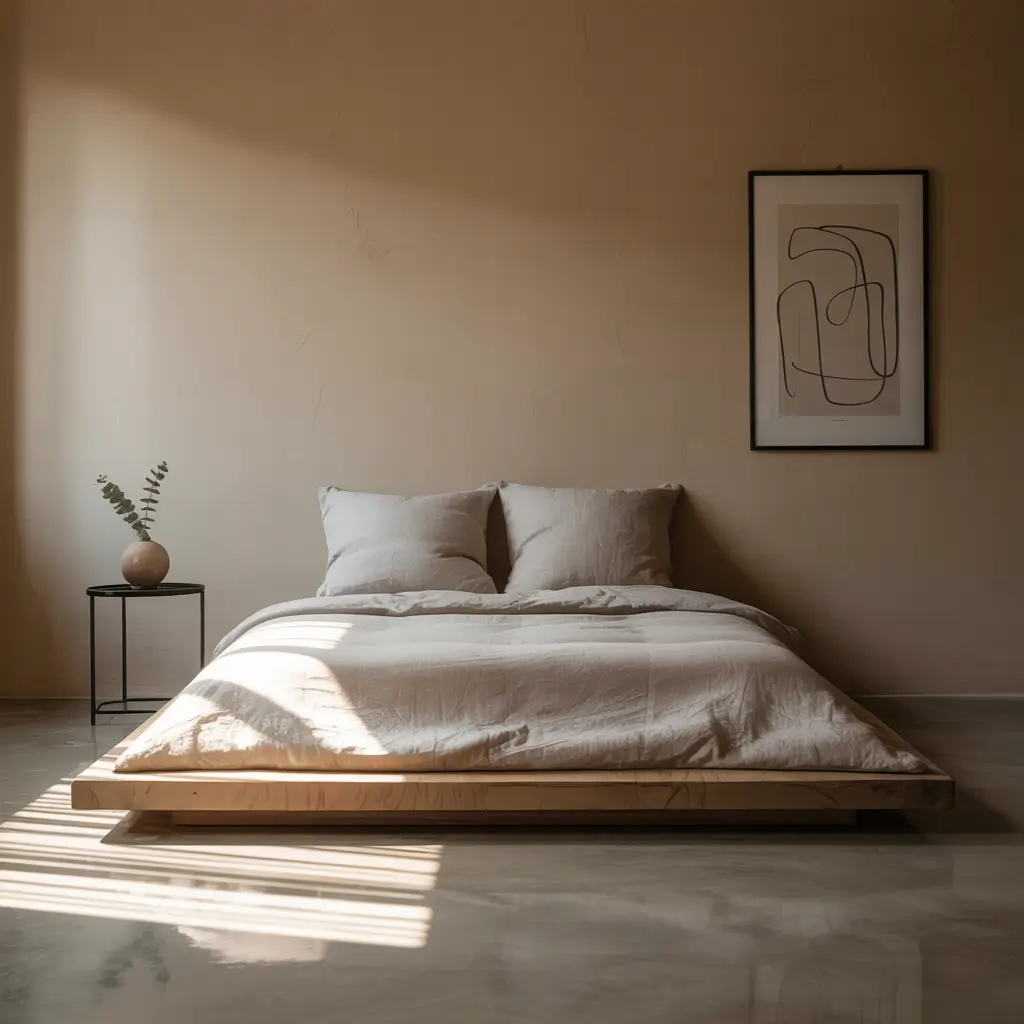 The key here is intentional simplicity. You want clean lines, zero clutter, and only the essentials. Think a sleek black platform bed against beige walls, crisp white bedding with maybe one black throw pillow, and that’s pretty much it.