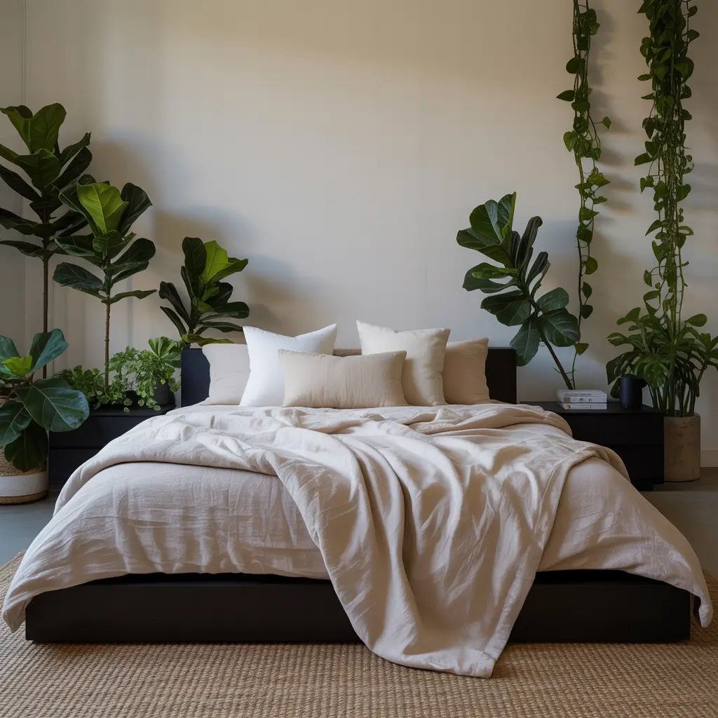 I’m obsessed with how a simple snake plant in a black ceramic pot or a trailing pothos in a beige macramé hanger transforms the entire vibe of a bedroom.