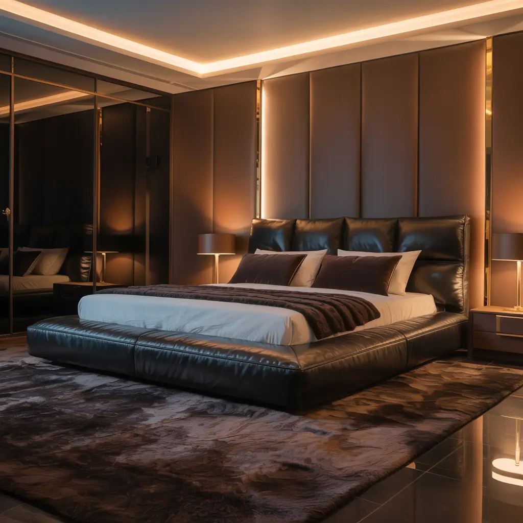 Contemporary design meets masculine elegance in this sophisticated approach. Think clean lines, minimal ornamentation, and a focus on quality materials. The brown leather adds warmth to what could otherwise feel stark.