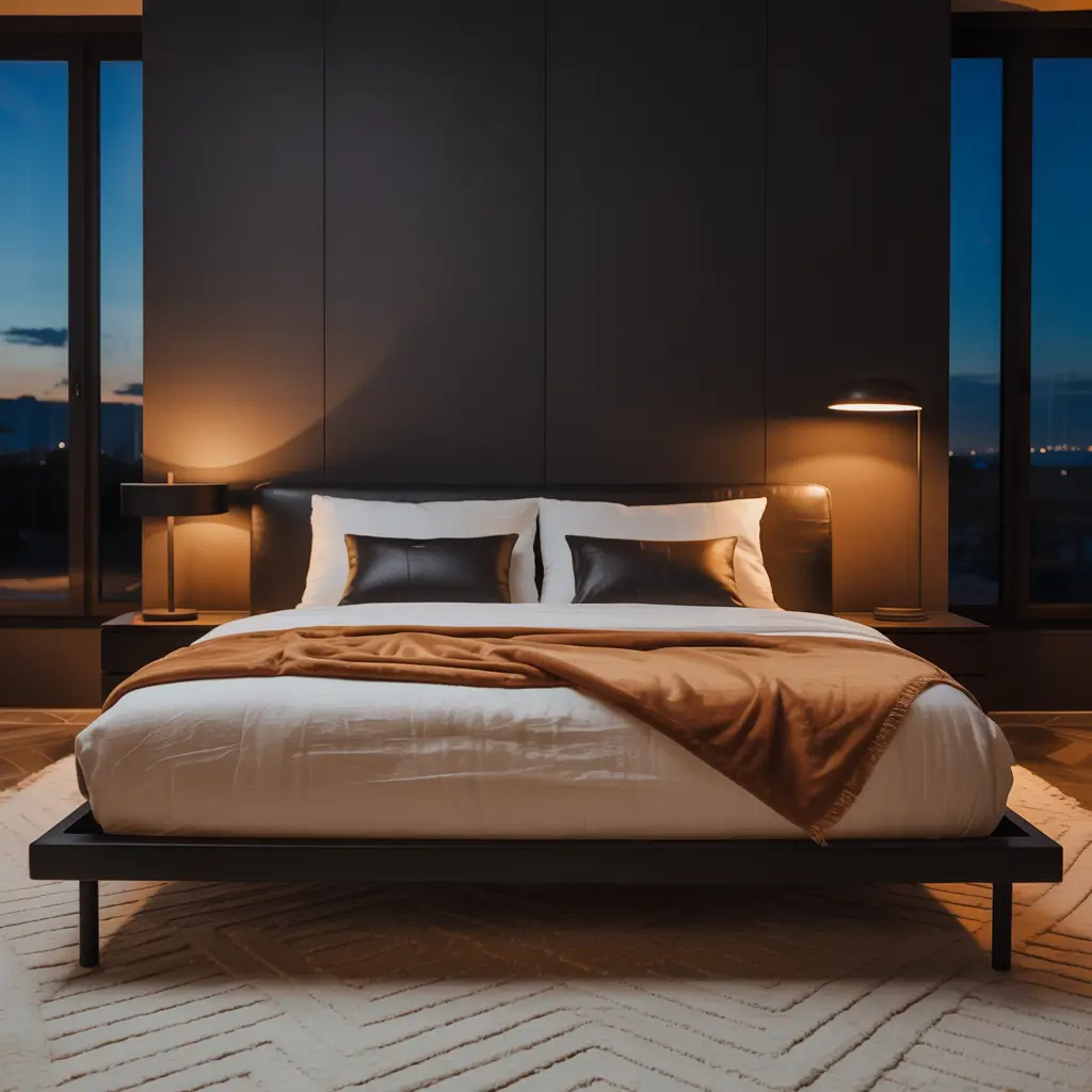 What really makes this work? Negative space. Let your bedroom breathe. Not every surface needs something on it. In fact, the empty spaces make the brown accents pop even more against those clean black lines.