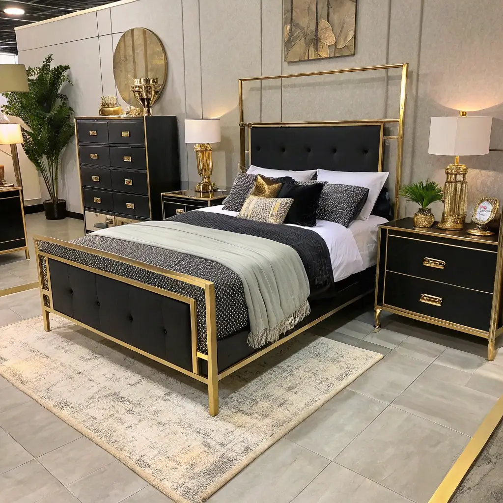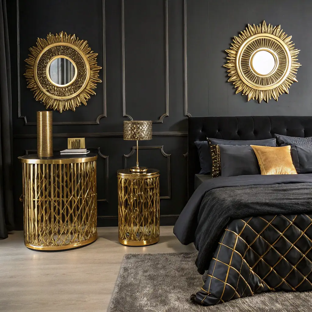 7. Black and Gold Bedroom Furniture Arrangement