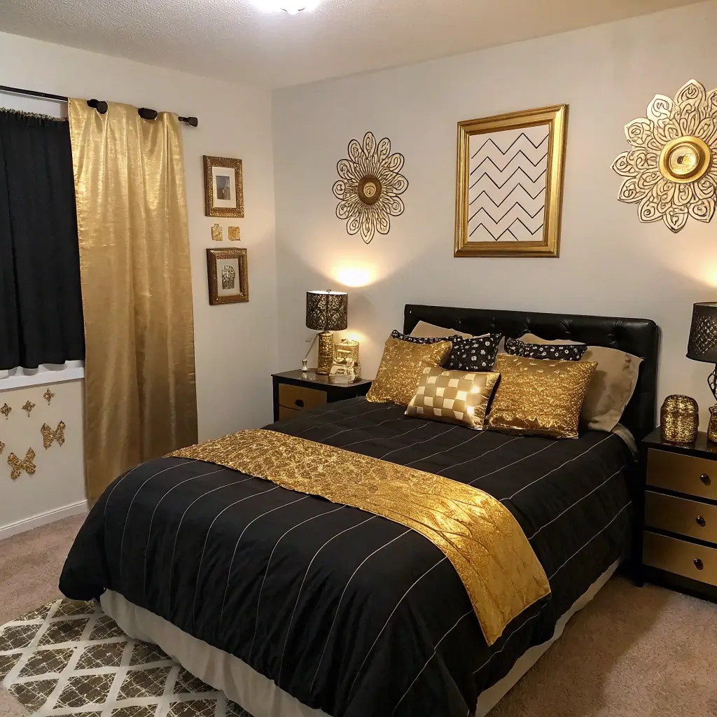 8. Black and Gold Bedroom Decor on a Budget
