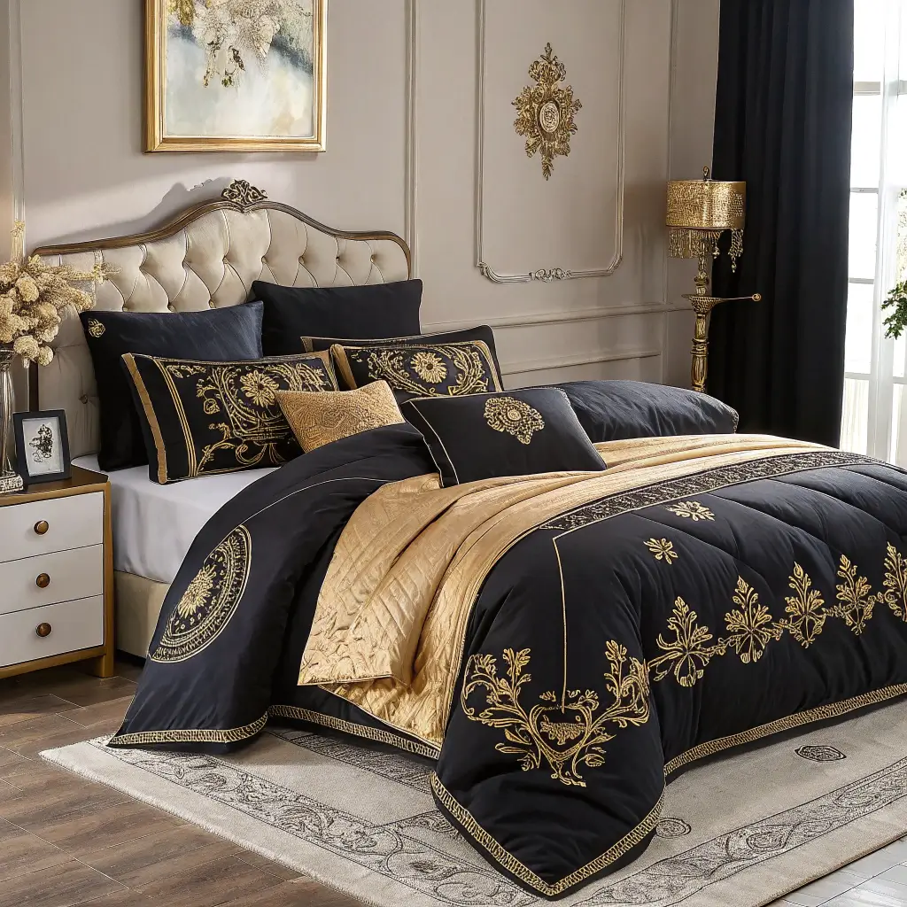 12. Black and Gold Bedroom Textiles and Bedding Ideas