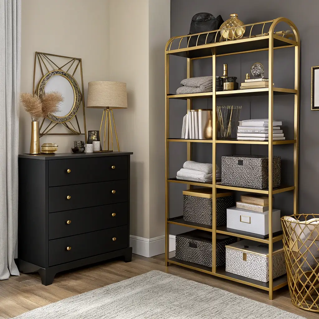 15. Black and Gold Bedroom Storage and Organization Tips