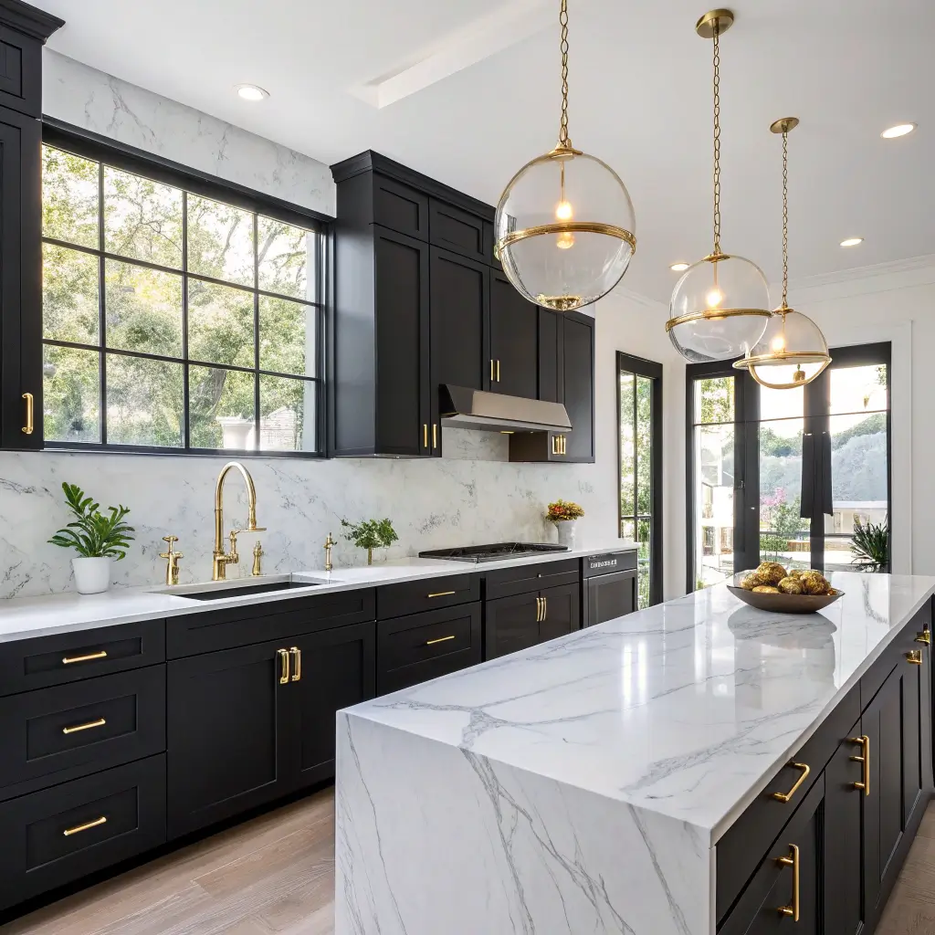Let’s start with the foundation that makes everyone stop and stare. Black cabinets instantly transform your kitchen from ordinary to extraordinary, and those gold accents? They’re the jewelry that makes the whole outfit pop.