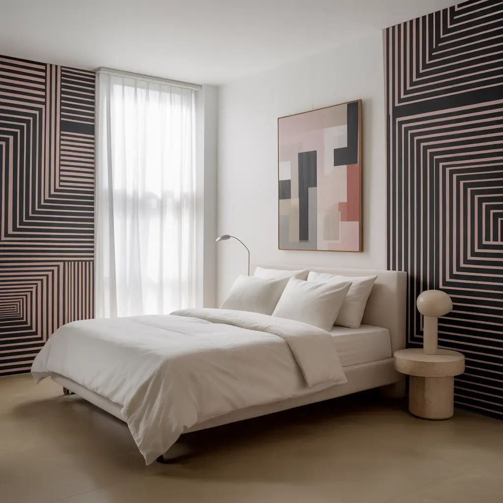The key to not overdoing it? Pick one major geometric element and let it shine. Maybe you go wild with a black and pink geometric wallpaper on one wall, then keep everything else relatively simple. Or perhaps you choose geometric bedding and balance it with solid-colored walls. The choice is yours, but remember – confidence is everything with bold patterns.