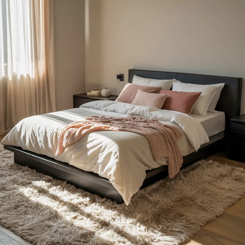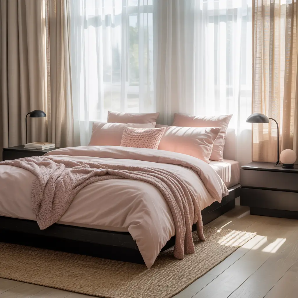 Start with the big pieces – a black upholstered headboard, matching nightstands, maybe a sleek dresser. Then layer in blush pink through your textiles and decorative objects. The contrast creates visual interest without overwhelming the senses. FYI, this approach also makes it super easy to switch up your color scheme later if you get bored.