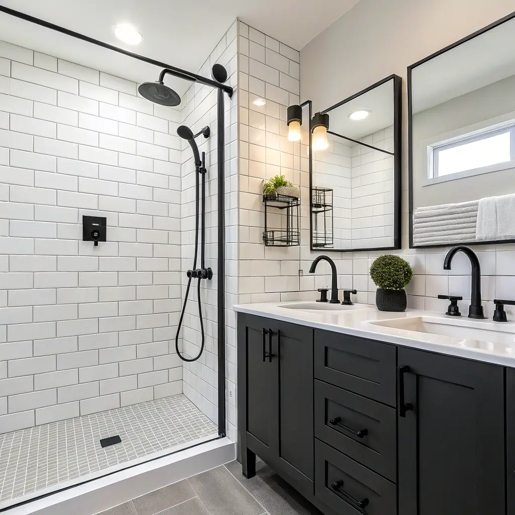 Bold Black Fixtures with White Tiles