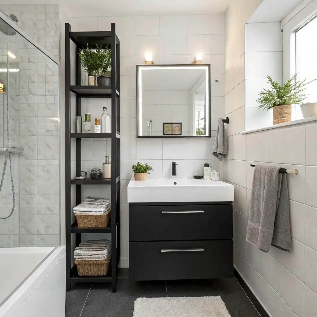 Start small. Black mirror frame. Black toilet paper holder. Black towel hooks. These little touches add up to create a cohesive look without overwhelming the space. Plus, if you change your mind later, swapping out accessories is way easier than retiling.