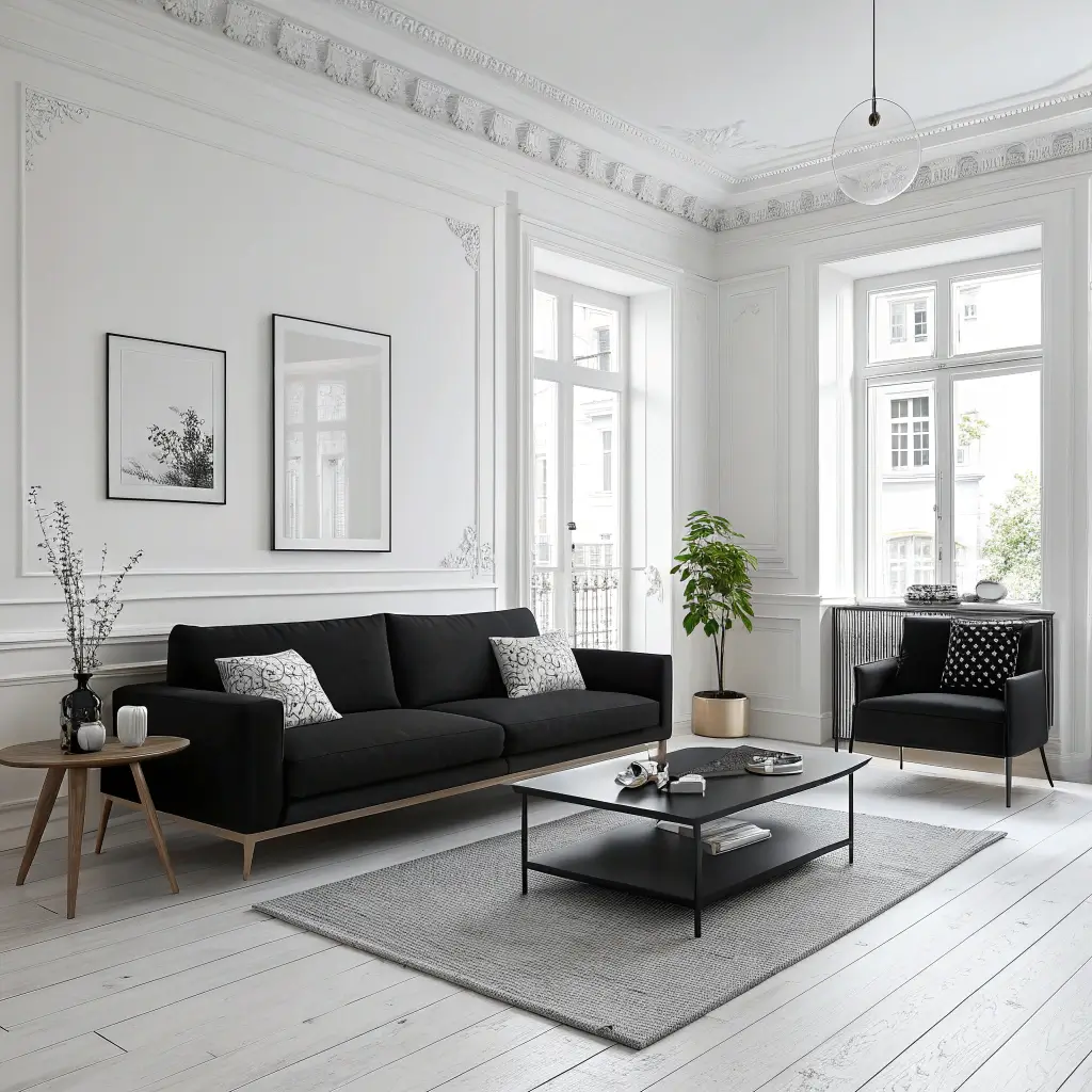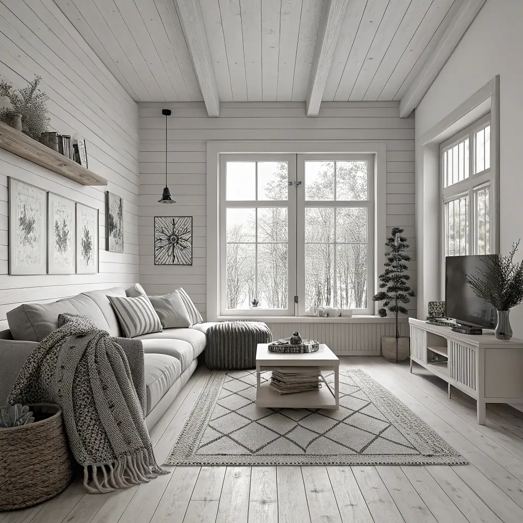 Start with white walls (obviously) and light wood floors. Add black accents through your furniture choices, but keep them minimal. The Scandinavians know something we often forget – natural light is your best decorator. So ditch those heavy curtains for sheer white panels that let the sunshine work its magic.