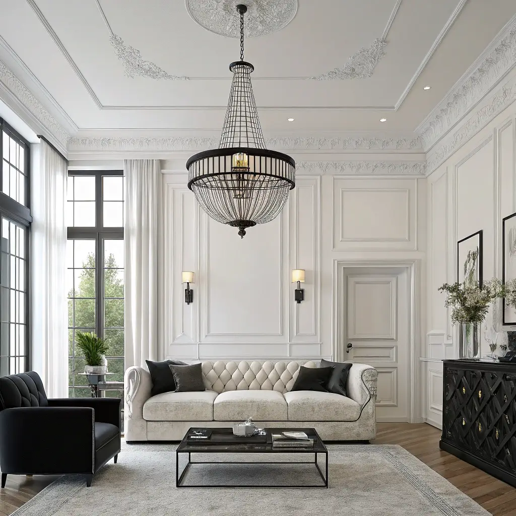 Picture a dramatic black chandelier against a white ceiling – instant focal point that commands attention. Or go for oversized white pendant lights that provide ambient lighting while maintaining the minimalist vibe. The key? Choose fixtures that complement your style while providing adequate illumination.