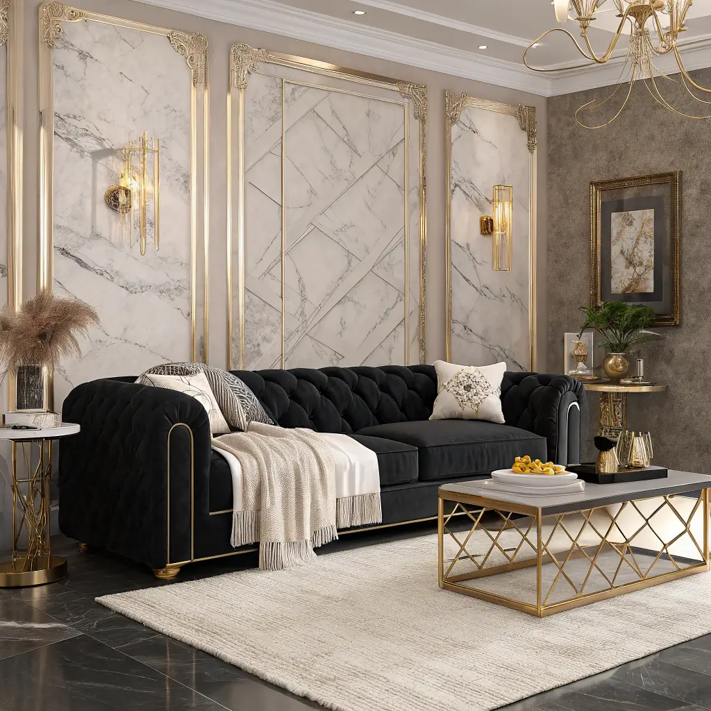 Picture this: white tufted sofa, black marble coffee table, and gold hardware on everything from picture frames to lamp bases. The trick here? Don’t go overboard – you want elegant, not Vegas casino. I learned this the hard way when I went a little crazy with the gold spray paint. Let’s just say subtlety is key.