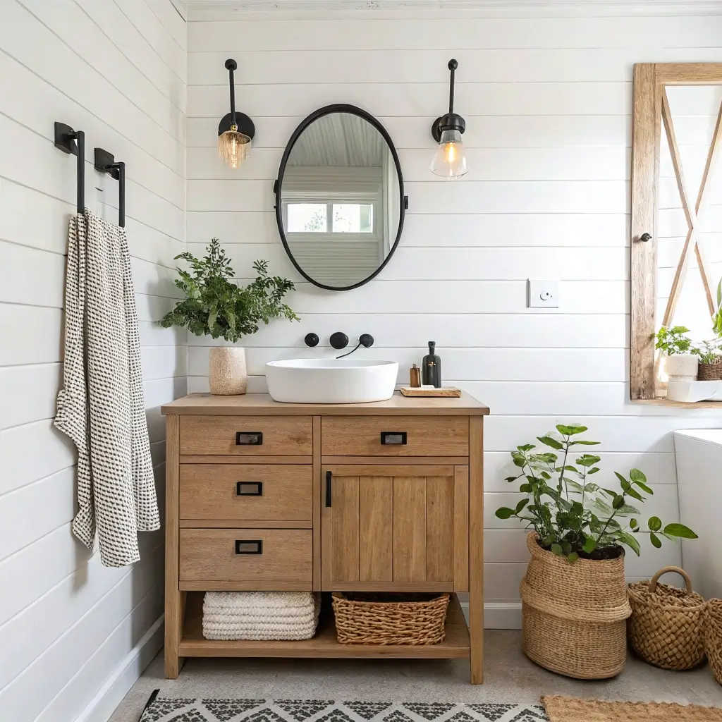 My advice? Start with one element—maybe swap your fixtures to matte black or add a wood-framed mirror—and see how you feel.