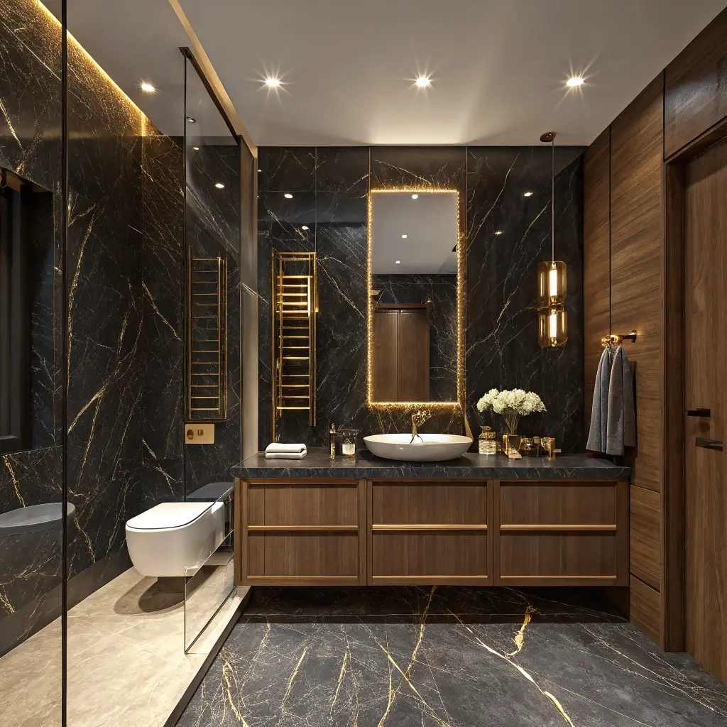 The fixtures? All black, all premium quality. I’m talking rainfall showerheads, thermostatic mixing valves, and those fancy Japanese-style toilets if you’re really committing to the luxury life.