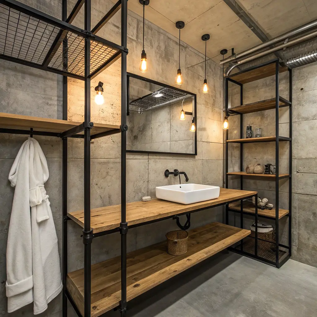 The wood here shouldn’t be too refined; a bit of roughness adds to the aesthetic. I’ve seen bathrooms with wood vanities made from old workbenches, and they absolutely nailed the industrial feel.