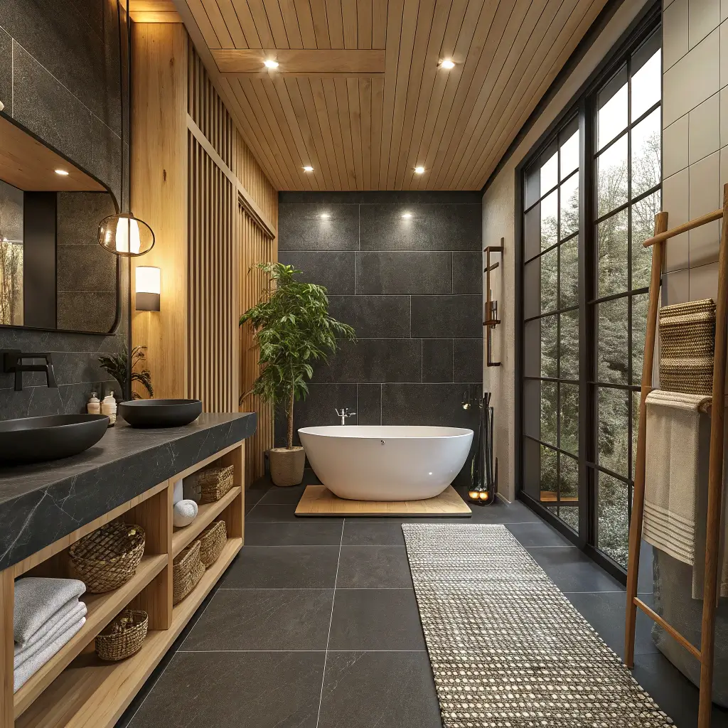 I’ve been obsessed with black and wood bathroom designs for years now, and honestly? It’s one of those pairings that just works.